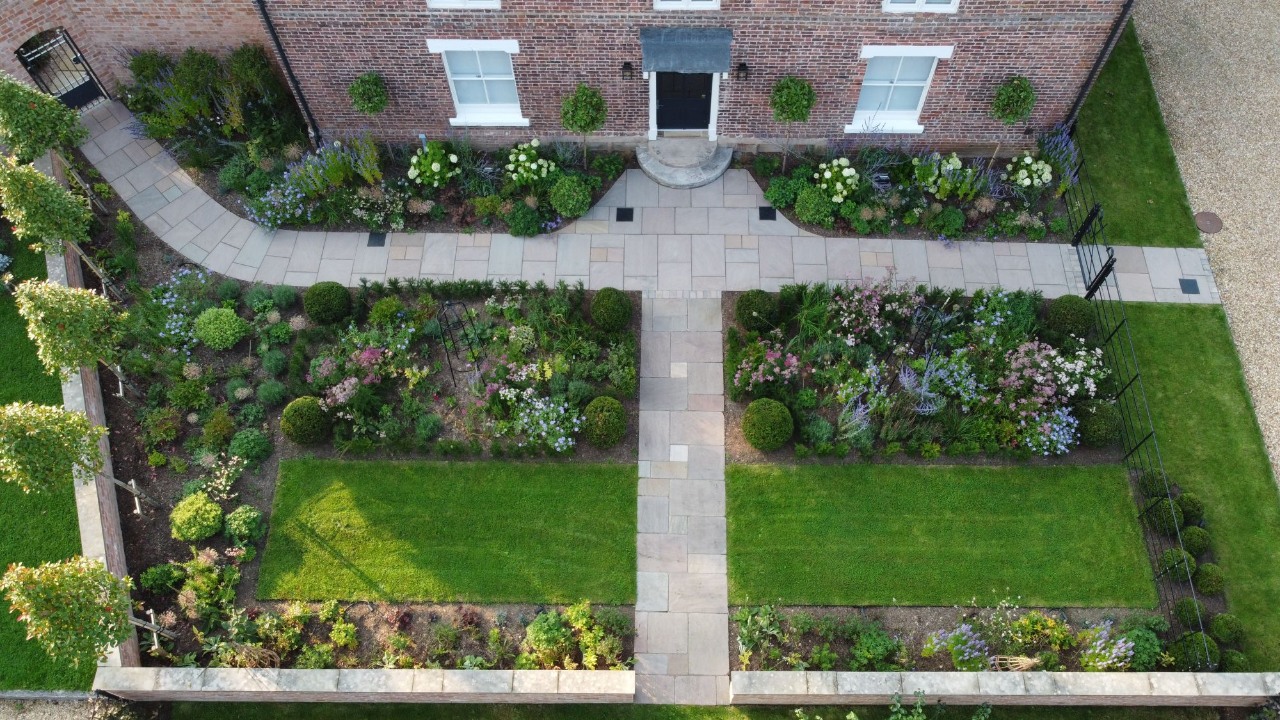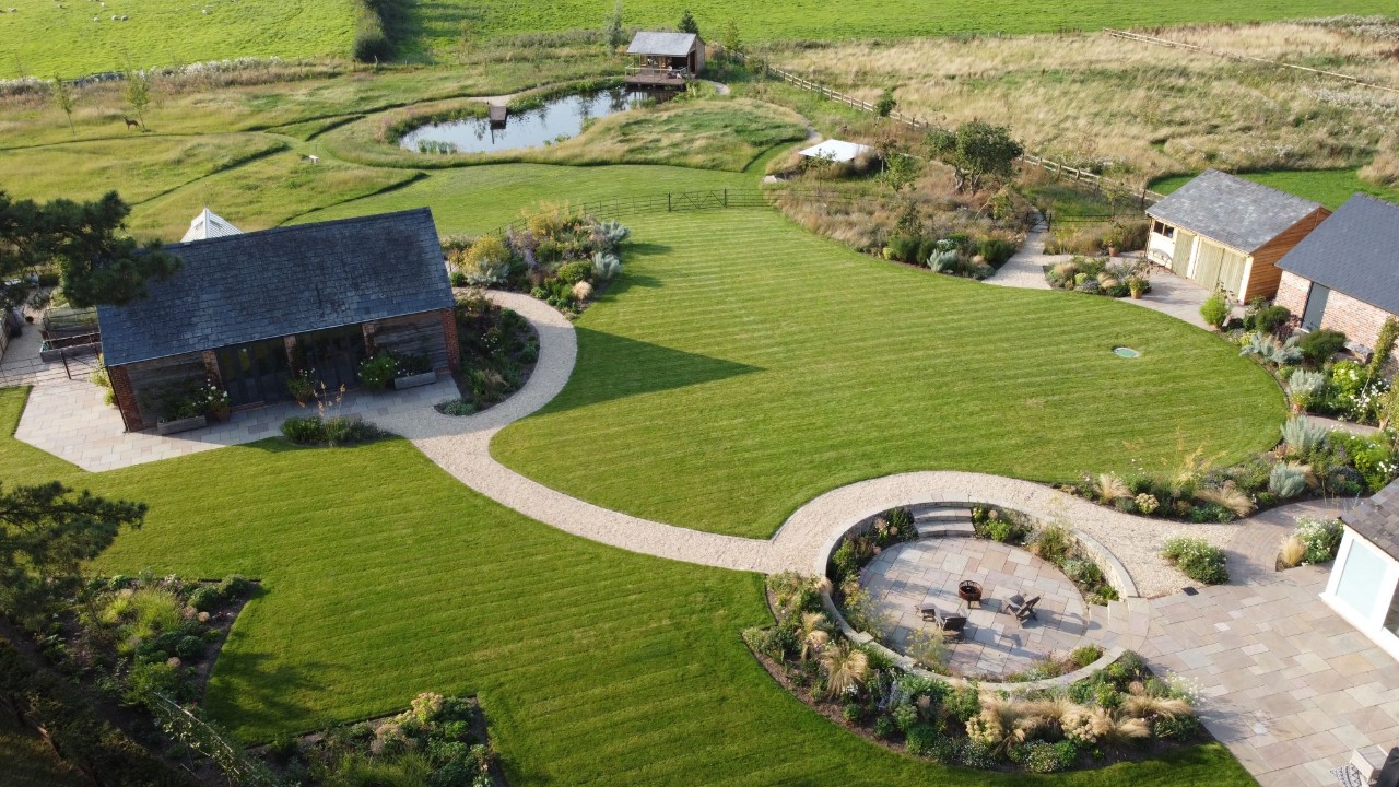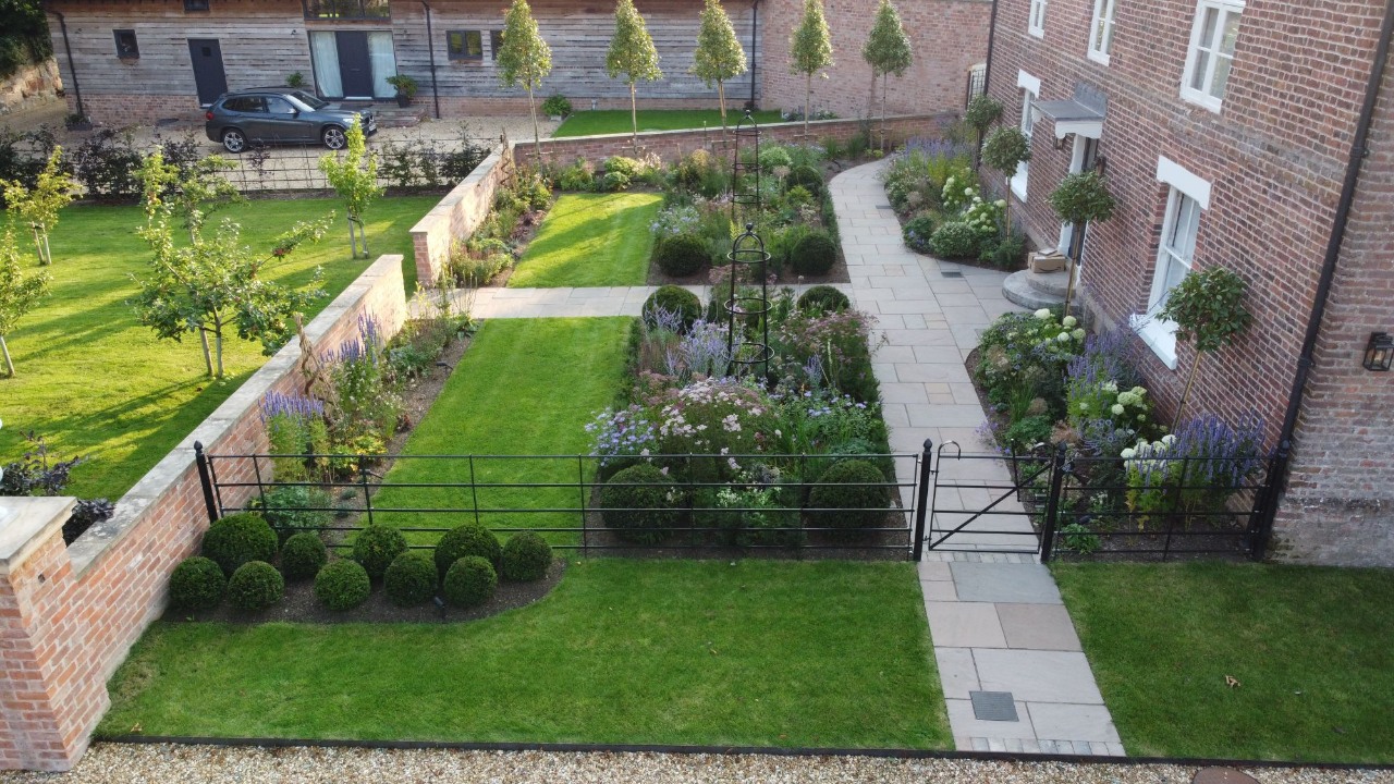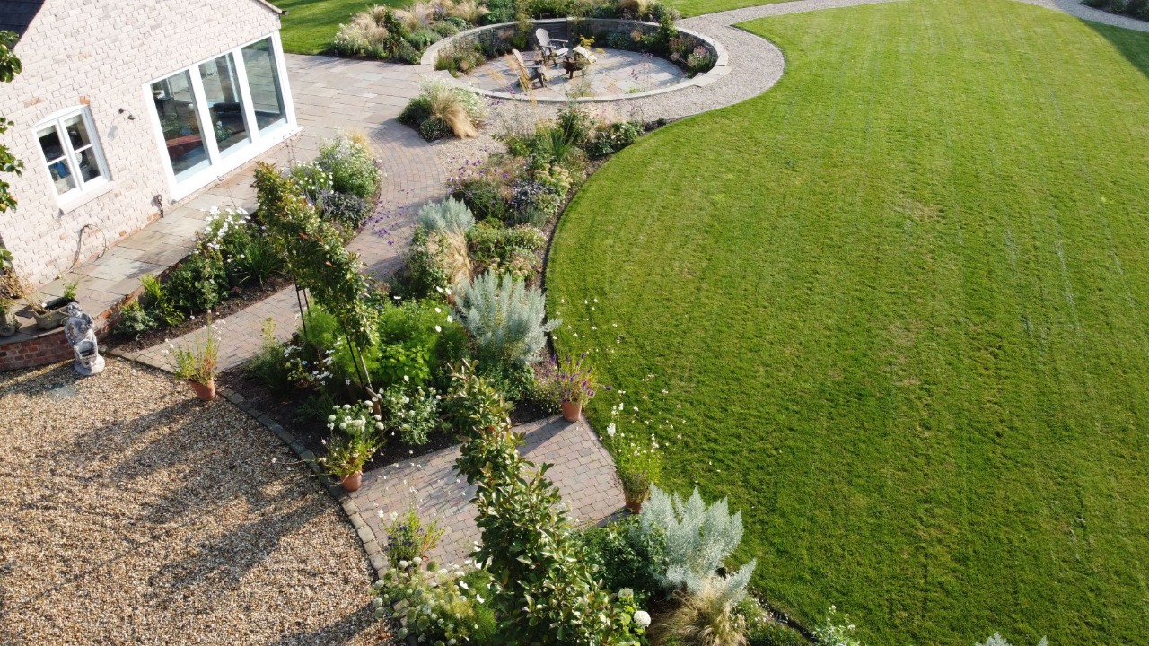 Since the build 2 years ago we have been visiting and maintaining the garden mainly cutting back, weeding and adding mulch to the borders this has included lawn treatments and the lake to be cleaned and re-positioning of the marginal planting as it matures all of which keeps the garden maturing as we intended from the client brief to where it is today